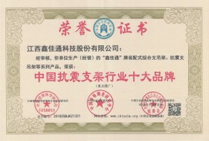 - 我們擁有多年抗震支吊架生產經驗,獲多項國家專利、國家檢測機構頒發檢測報告證書,我司生產的抗震支吊架是江西省住房和城鄉建設廳重點推廣產品,現有廠房、生產設備等固定資產投資過億。